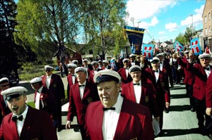 Det toneangivende førstevalg og det høyt dekorerte koret med de helt uvanlig velsittende og kledlige korjakkene skal igjen prege Grunnlovsfeiringen i Elverum by. Først ved Folkehøgskulens bauta klokken 08.30 med klassikerene «Sang til Flagget» og «Gamle Norge» samt «Ja, vi Elsker», senere i barnetoget med vårt vanlige tog-repertoir.