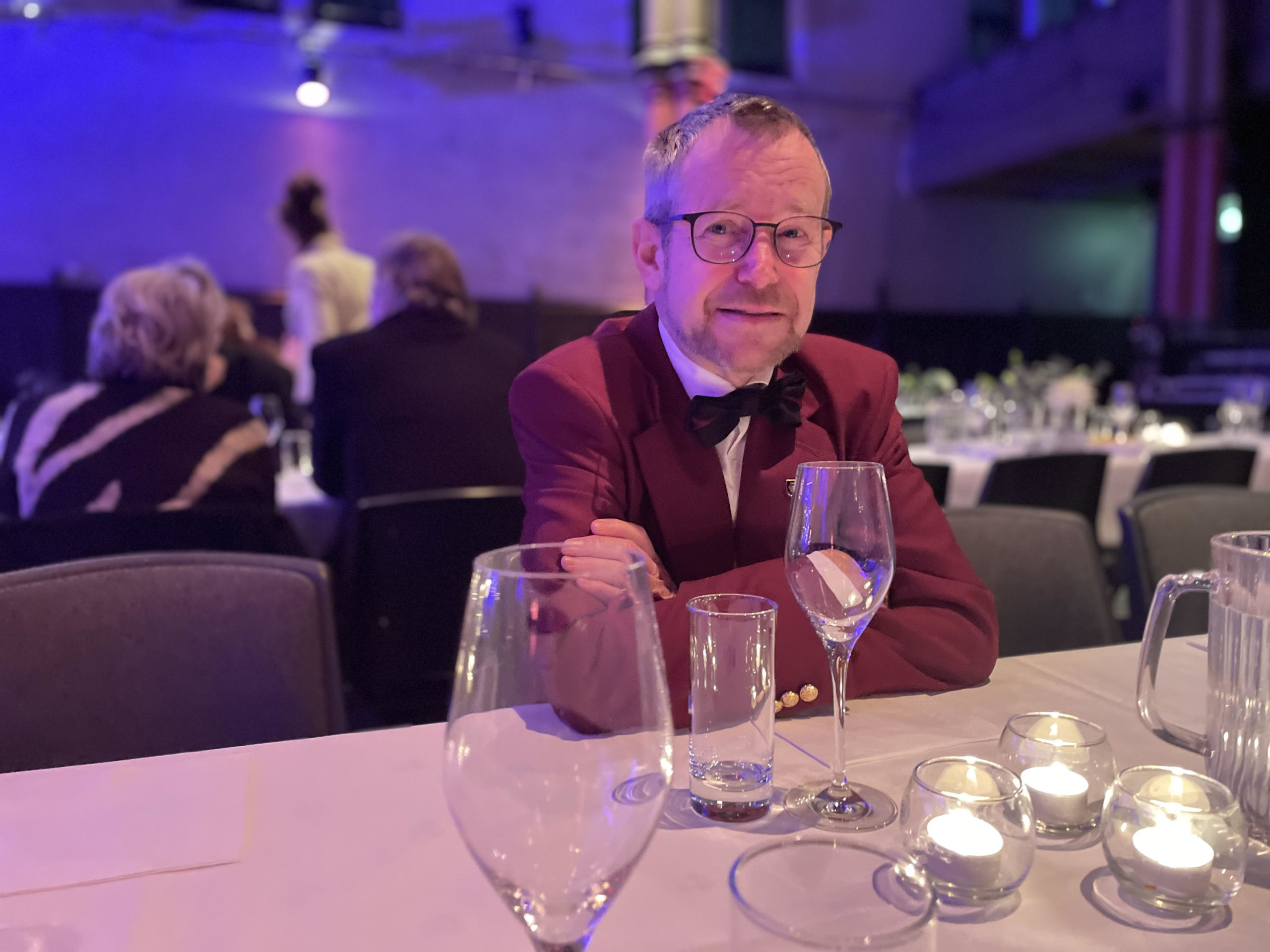 2.tenor Madsbu under minnesamværet i Kulturkirken Jakob etter selve bisettelsen. Stilfull i burgunderrødt selvsagt.