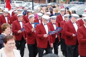 Det blir sangeropptog under forbundsstevnet på Røros førstkommende helg. Her er den nesten vemodig vakre buketten med burgunderrøde korgutter som ble servert i et annet tog, nemlig det i Elverum by 17.mai.