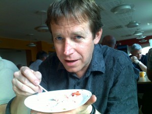 En av dem som selvsagt gjorde mest ablegøyer rundt den i utgangspunktet seremonielle kremkaken med marsipanlokk, var den helt selvutnevnte assisterende merkevarebygger og 1.tenor med den uvanlig glassklare stemmen og den særlig kameratslige og ikke minst tvers gjennom omsorgsfulle væremåten, Jens Petter ”alltid tidlig og godt over skia” Madsbu. – Vi benytter kremkake ved enkelte anledninger. Da i første rekke for å bygge opp guttene rent mentalt, sier den særdeles ordentlige og på alle måter trivelige presidentskapsmedlem med overordnet arrangementsansvar, 2.bass Gunnar Hofgaard. Bassen med sin vakre grunntone og rause væremåte, sier videre at kremkake sist ble benyttet i forkant av Burgunderjakkenes i ettertid kalt storslåtte og enestående innsats i forbindelse med å synge jula inn i Elverum Kirke. – Denne gangen var det for å markere to ting; at det var den siste offisielle øvelsen denne sesongen og fordi det nå bare er dager til Røros-stevnet, sier en presist formulert 2.bass Hofgaard. Se mer om stevnet her.