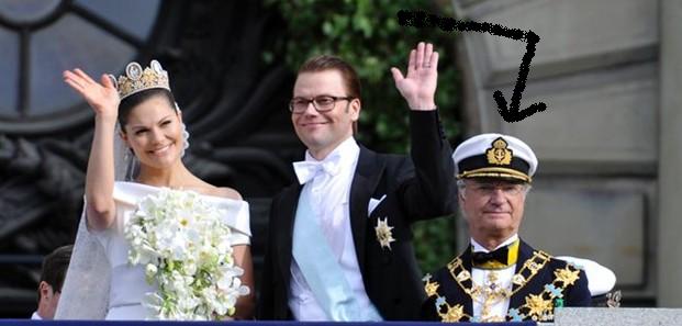 Følg pilen og se den veldige likheten mellom Elverum Mannskors lue og den svenske kongens hodeplagg.