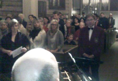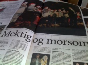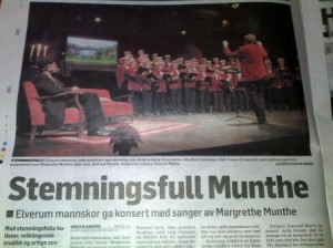 Kirka i Elverum hadde gjort en vri på årets ”Syng julen inn”-arrangement. I stedet for at alle byens kor samles i en forestilling var det nå lagt opp til to forestillinger. Etter de siste års oppsiktsvekkende vekst av medlemmer og den nesten internasjonalt anerkjente kunstneriske utviklingen i Elverum Mannskor, har nemlig kirka blitt for trang. Men arrangøren hadde fortsatt tradisjonen med jevn stigning i programmet. Aller sist av alle korene var Elverum Mannskor. – På mange måter en grei løsning. Det var lagt opp til en fin stigning i programmet. Selv om ventetida kan virke lang for mange, tror jeg det aller viktigste er at det tallrike publikummet reiser hjem med en god julestemning i kroppen. Da er det jo lite som passer bedre enn Elverum Mannskors meget empatiske, samstemte og presist framførte ”Det lyser i stille grender”, sier den meget sympatisk sammensatte presidenten for de offisielle og egentlig eneste leverandørene av ”Elverumssangen” og de kongelige hoffleverandørene av ”Gamle Norge”, Einar Mellum. 1.tenoren med den renstrøkne tenorstemmen og den uvanlig kameratslige væremåten fortsetter med å ønske alle korvenner og kanskje særlig venner av Elverum Mannskor en riktig god jul og et godt nytt sangerår.
