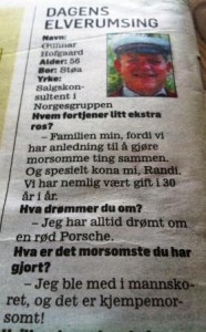 Presidentskapsmedlem og 2.bass Gunnar “I-Fare-For-Snart-Å-Bli-Som-Silvio-Berlusconi” Hofgaard, med ansvar for arrangementer og gjennom det leder av den mye omtalte gruppen som gjennomfører de etter hvert så skandaleomsuste vintrekningene som kalles gjennomkorrupte og med resultater som synes tvers gjennom bestilte hver eneste mandag kveld, har trolig forstått alvoret i de etter hvert så mange og grove anklagene som hagler rundt hans innerste sirkel; vinlotteristene ved pampebordet. I dagens utgave av lokalavisen Østlendingen har han gjort et PR-fremstøt av de sjeldne og fått plass under spalten ”Dagens elverumsing”. Her deler han raust og merkevaremessig høyst profesjonelt og elegant det morsomste han har gjort med de mange leserne. Nemlig det å bli med i det høyt dekorerte og på stadig flere måter veldige Elverum Mannskor. Med denne handlingen viser den svært treffende og alltid meget omgjengelige 2.bass Hofgaard at han hever seg over påstandene om korrupsjon i egne rekker. Å bruke media er for øvrig et kjent virkemiddel og slik sett kan nok framstøtet gjøre at Hofgaard er i enda større fare for snart å bli som Silvio Berlusconi.