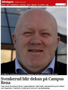 Høgskolestyret i Hedmark har, ikke uventet, søkt i korrekkene til de åpenbare kulturprisvinnerne og nesten bestandig CD-aktuelle Elverum Mannskor for å finne ny dekan på Campus Rena. Den bunnsolide og høyt kompetente og adekvate 2. tenoren, Peer Jacob Svenkerud ble foretrukket til stillingen.