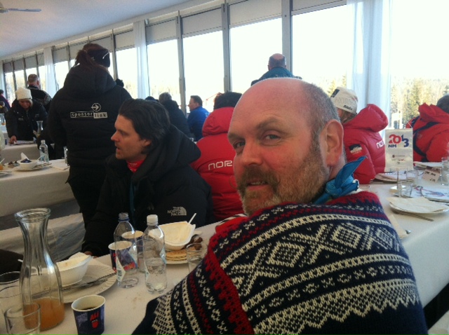 Korets visepresident Gunnar Østmoe, med spesielt ansvar for merkevarebygging og markedsføring er her fotografert i VIP-teltet, hvor han, med for anledningen nyvokset og glinsende bart, kastet glans over arrangementet med rause godord, oppmuntrende betraktninger om det på alle måter vellykkede idrettsarrangementet, og der han gledet vertskapet enormt ved å innta rikelige mengder av de svært velsmakende lokale matretter, som brumunddalskokken Hai med den mest finstemte fingerspitzgefühl hadde tilberedt – til ære for blant andre den stolte og takknemlige mottaker av Elverum Mannskors første CD-utgivelse, Hans Majestet Kong Harald, og den tidligere omtalte CD-plates framtredende 2. tenor og visepresident med spesielt ansvar for merkevarebygging og markedføring samt generalsekretær i korets blytunge Kunsterisk utvalg – og Østlendingen-redaktør- Gunnar Østmoe. Og den oppmerksomme tv-seer vil kanskje, i ettertankens oppklarende lys, kunne samstemme i at hurraropene i den spennende finishen på kvinnenes 15-kilometer, hadde en spesielt fyldig klang, som av – nettopp – en godt oppvarmet og topp motivert 2. tenor.