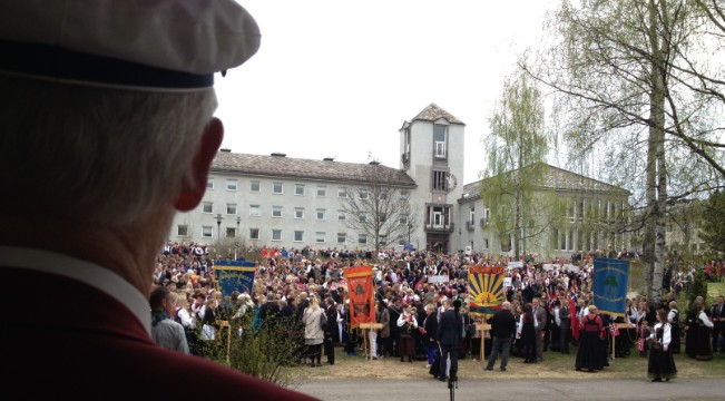 Vi passer også på å fortelle at også i år kom tusenvis ut i gatene i finstasen og med flagg for å se Elverum Mannskor gå i tog og synge i Leiret 17. mai. Guttene var i år helt ekstraordinært godt opplagte og det ble etter hvert også mange som gikk sammen med de burgunderrøde kulturprisvinnerne i tog denne dagen. Særlig var det morsomt for de nesten bestandig CD-aktuelle korguttene at så mange unge ropte hurra og fikk is i anledning mannskorets opptreden. Presidentskapet mener denne årlige tradisjonen kan være med å bygge merkevaren og ikke minst sikre rekrutteringen. Presidenten og 1. tenoren med den strøkne stemmen og den empatiske og uvanlig kameratslige væremåten, Einar Mellum, går så langt som å si denne mai-tradisjonen er viktig i forhold til korets oppsiktsvekkende triple bunnlinjetenkning.