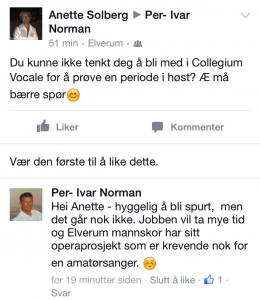 «Du kunne ikke tenkt deg å bli med i Collegium Vocale for å prøve en periode i høst? Æ må bærre spør».