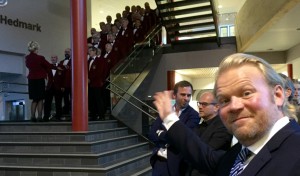 Den verdenskjente norske skuespilleren Anders Baasmo Christiansen var selvsagt på plass under filmpremieren. Hamarsingen og Elverum Mannskor-vennen innehar en av hovedrollene, kronprins Olav. En av hovedrollene hadde han også under den veldige operaforestillingen Helt konge å si nei – en operaforestilling om krig og fred og sånn, som også gikk i Terningen Arena. Gjensynet var intet mindre enn rørende. Se klipp fra operaforestillingen her.