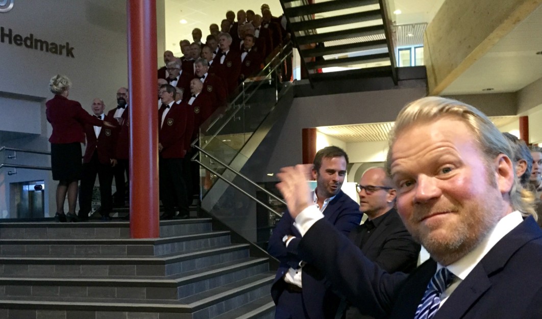 – Artig for oss og selvsagt viktig for hendelsen og helt på sin plass. Mange hadde nok operaforestillingen vår i januar, med samme tema som filmen, langt framme i panna. Vi dro fram noen gode klassiske norske låter fra grunnrepertoaret vårt, sier presidenten, den bestandig veltalende og tvers gjennom redelige 1.bass Jan Eirik Krey.