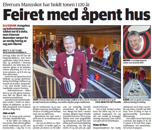 Selv om nær hver tredje pris gikk til koret med de velsittende og åpenbart skreddersydde korjakkene i den opp mot vemodig vakre burgunderrøde fargen og den internasjonalt anerkjente og svært oppsiktsvekkende triple bunnlinjetenkningen, Elverum Mannskor, var ingen av de mange koristene som møttes til galla tydelig overrasket da prisene ble delt ut lørdag kveld. Elverum Mannskor fikk prisene «Årets kor», Årets korproduksjon og Årets rekrutteringsstunt.