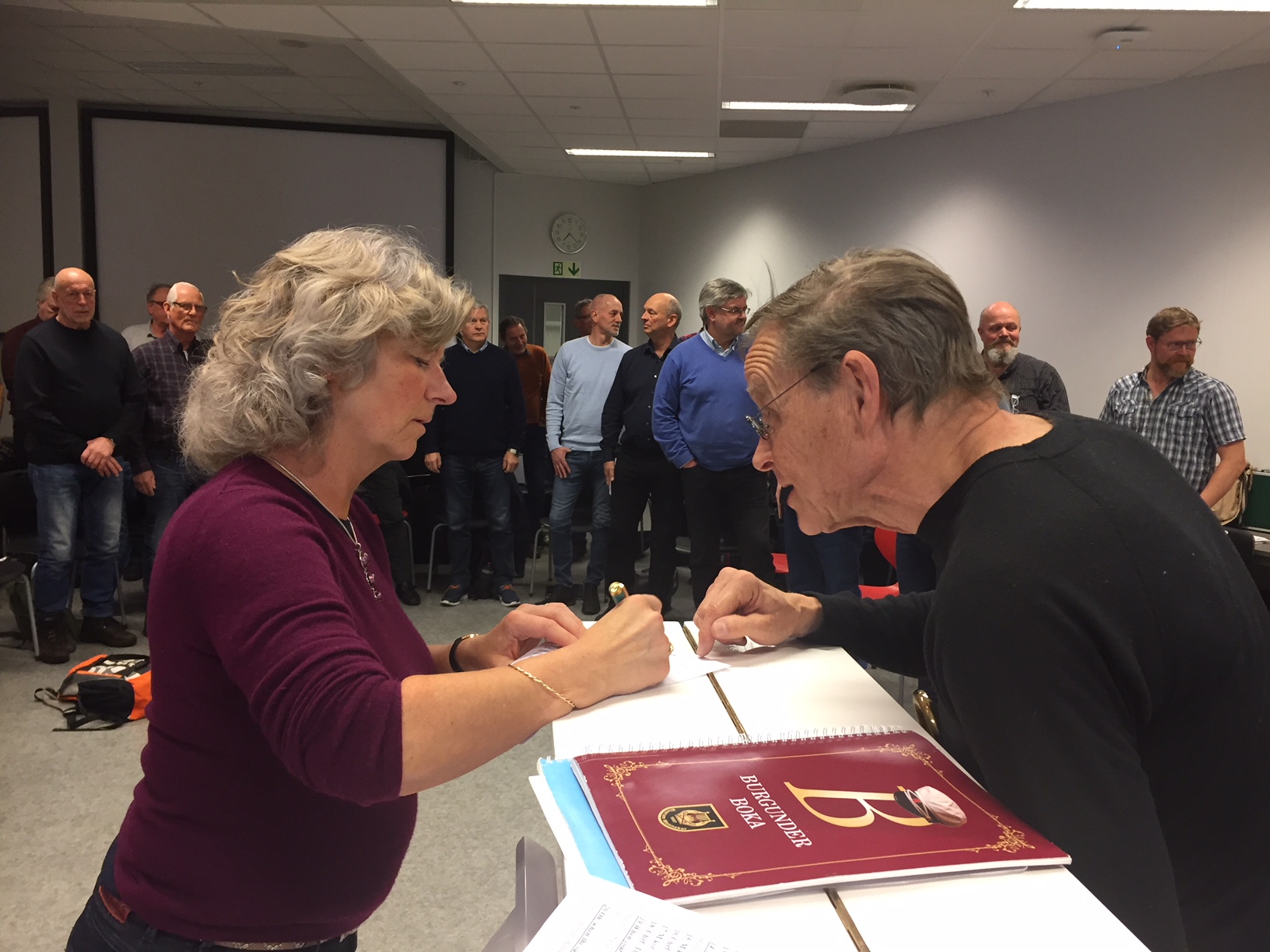 Nærmere 50 burgunderrøde mannskorsangere stilte til den minnerike konserten på selveste kvinnedagen.